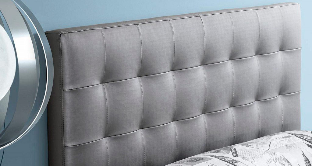 Cabecero tapizado de cuadros acolchado, disponible en tres medidas de ancho diferentes.