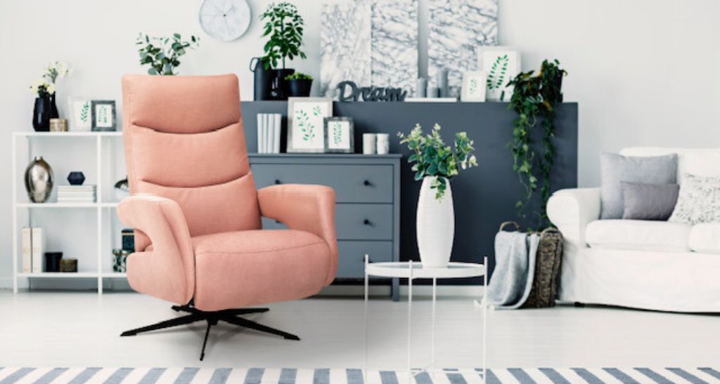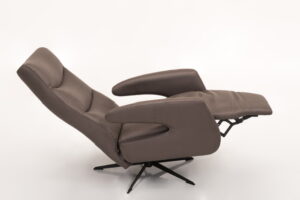 Sillón relax eléctrico, con pie giratorio y estructura metálica.