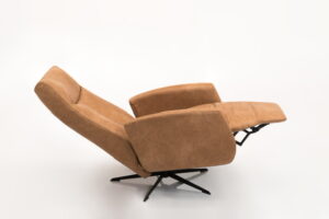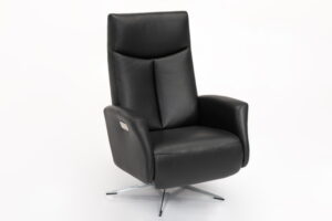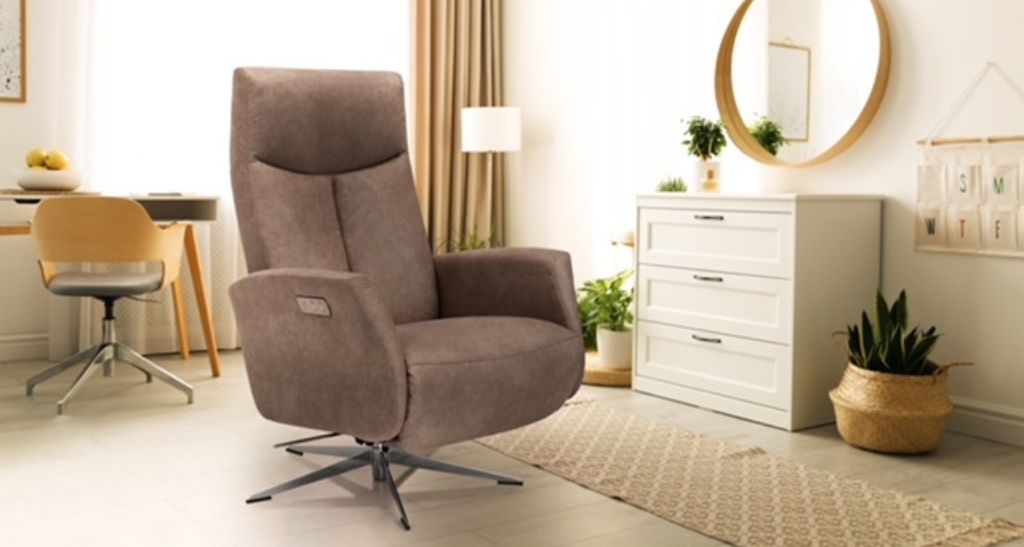 Sillón relax eléctrico, con pie giratorio y estructura metálica.