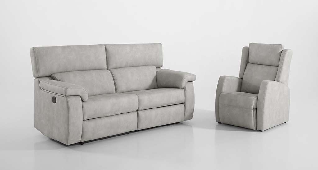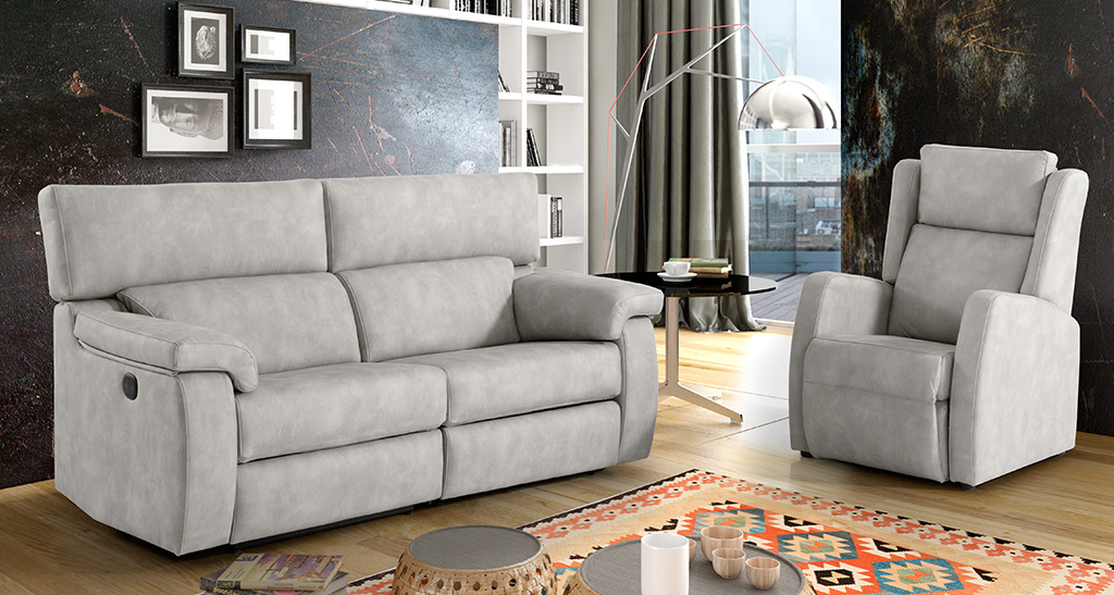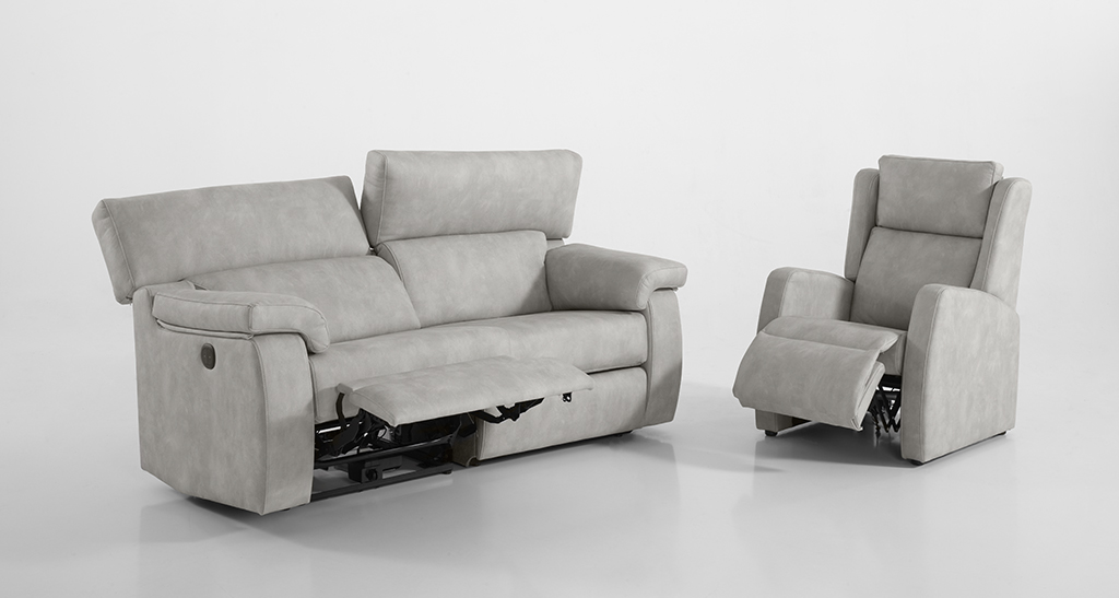 Sillón relax, con respaldo reclinable y reposapiés con apertura manual o eléctrica.