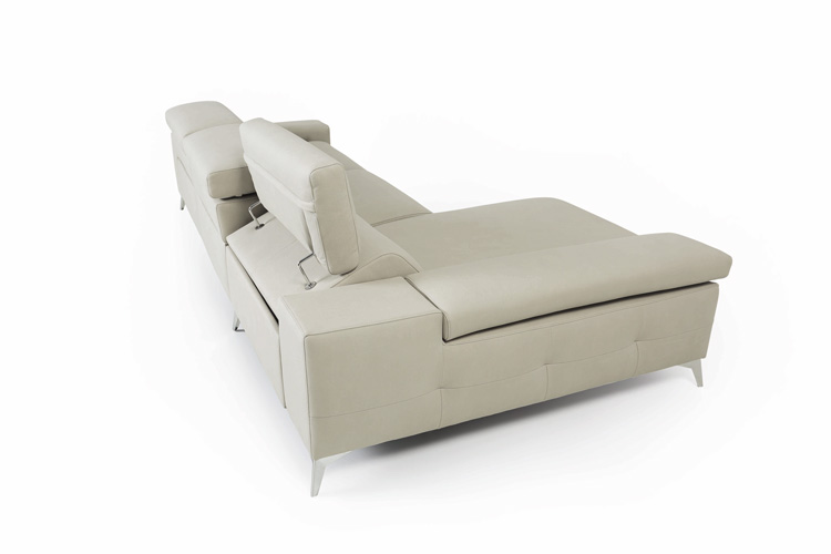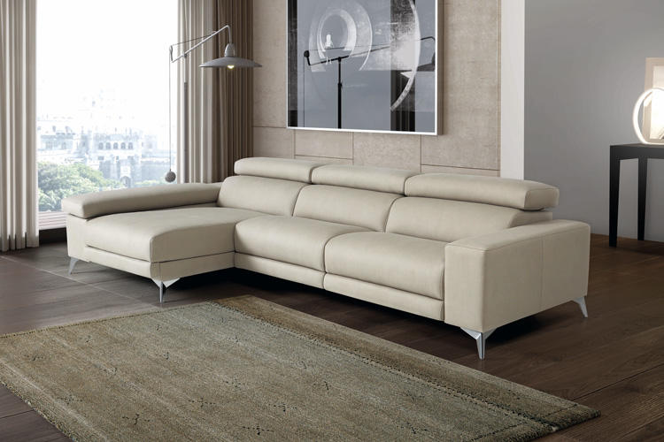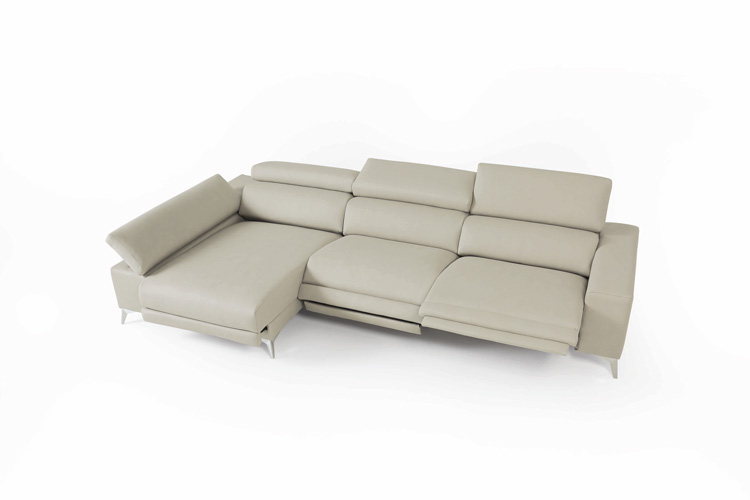 Sofá relax modular con brazo multiposicional, con respaldo abatible sistema italiano y patas altas en diferentes acabados.