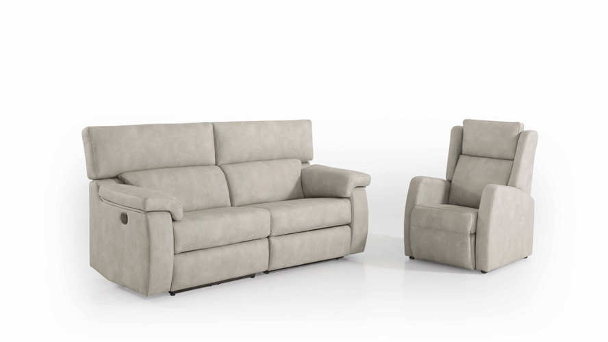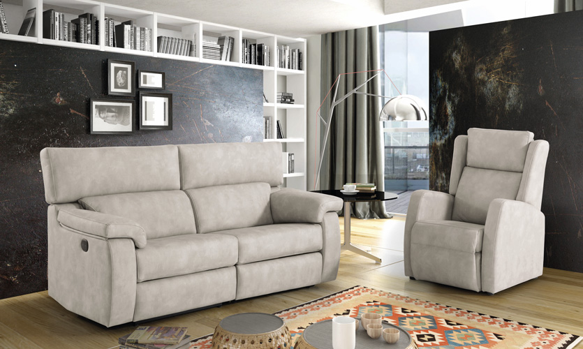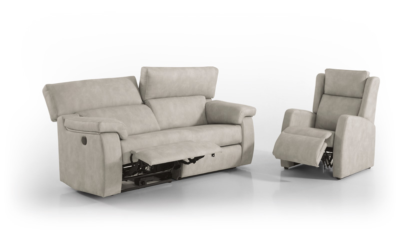 Sofá relax modular con cabezal reclinable y fondo reducido.