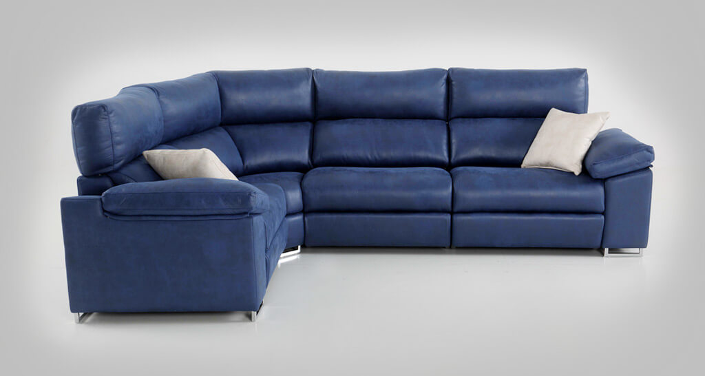 Sofá relax modular rinconera con cabezal reclinable, reposapiés y motor relax opcional.