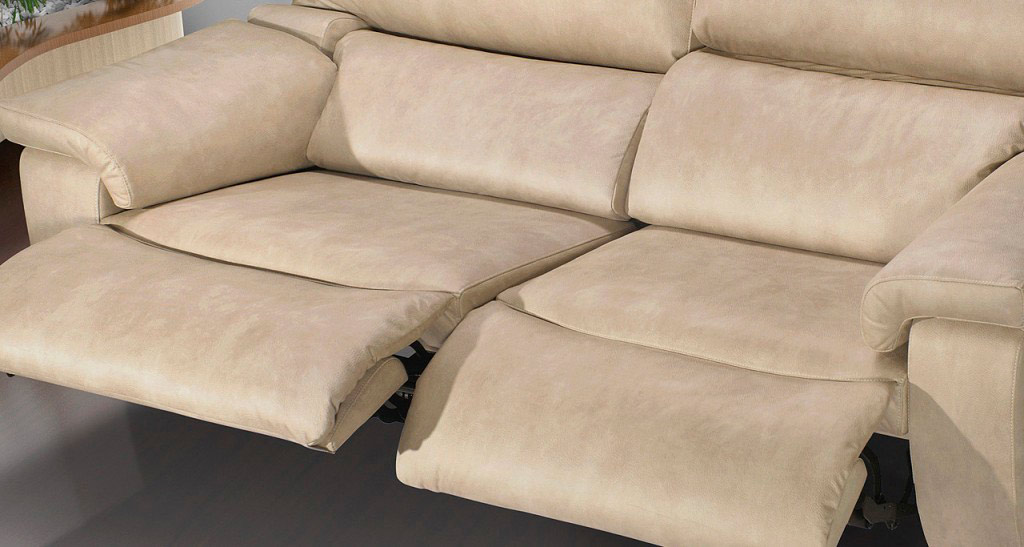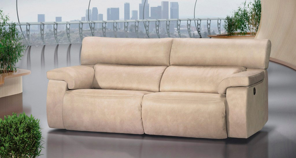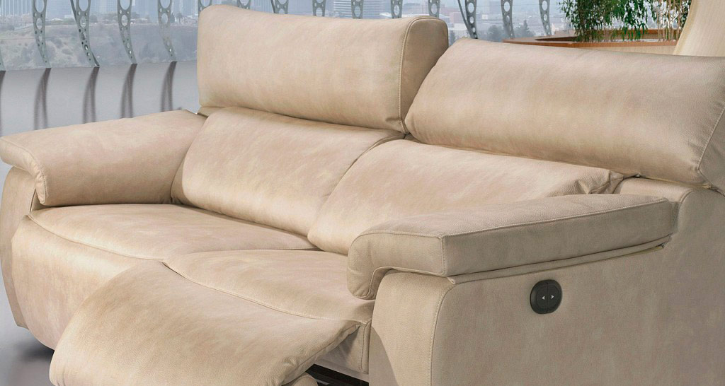 Sofá relax modular con cabezal reclinable y reposapiés.