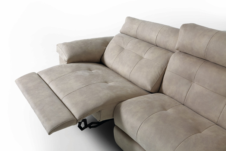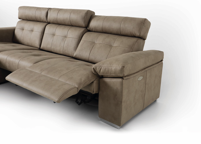 Sofá relax modular con cabezal y respaldo reclinables y asiento deslizante. Diseño moderno con patas de aluminio. Numerosas combinaciones disponibles en distintas medidas.