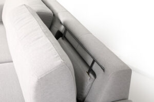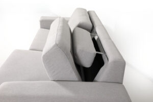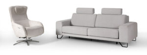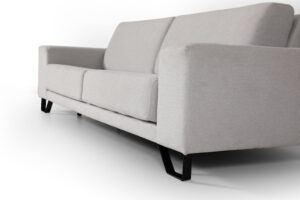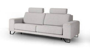 La sencillez y La Paz que trasmite este modelo da nombre a este sofá. Aparentemente es un sofá muy sencillo de fabricar, pero realmente es todo lo contrario. Hay algo que hace del sofá Zen un sofá diferente al resto, tiene unos cabezales escondidos en un alojamiento detrás del respaldo que se pueden girar 180º para usarlos de reposacabezas. De este modo, cuando los cabezales están recogidos el sofá es bajito de respaldo , de líneas muy modernas y cuando lo levantamos pierde un poco ese toque moderno pero nos sirve para apoyar la cabeza. Los asientos son deslizantes y se pueden desenfundar para su lavado a máquina , los respaldos también son desenfundables . Las patas de serie que ponemos en este modelo tienen una altura de 14cm en metal color cromo o negro, además podemos elegir entre otras patas de la misma altura pero con otro formato diferente.