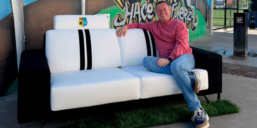 Tapigrama ha demostrado su compromiso con el deporte local con proyectos únicos, como el sofá creado para el Club Deportivo La Unión, tapizado con los colores blanco y negro del equipo y con el escudo del club bordado en el respaldo. Este sofá personalizado se creó para un torneo patrocinado por Tapigrama y presidió el terreno de juego del club durante el evento. Incluso Jesús Galve, cofundador de Tapigrama, se sentó en él, simbolizando la cercanía de la empresa con la comunidad deportiva local.